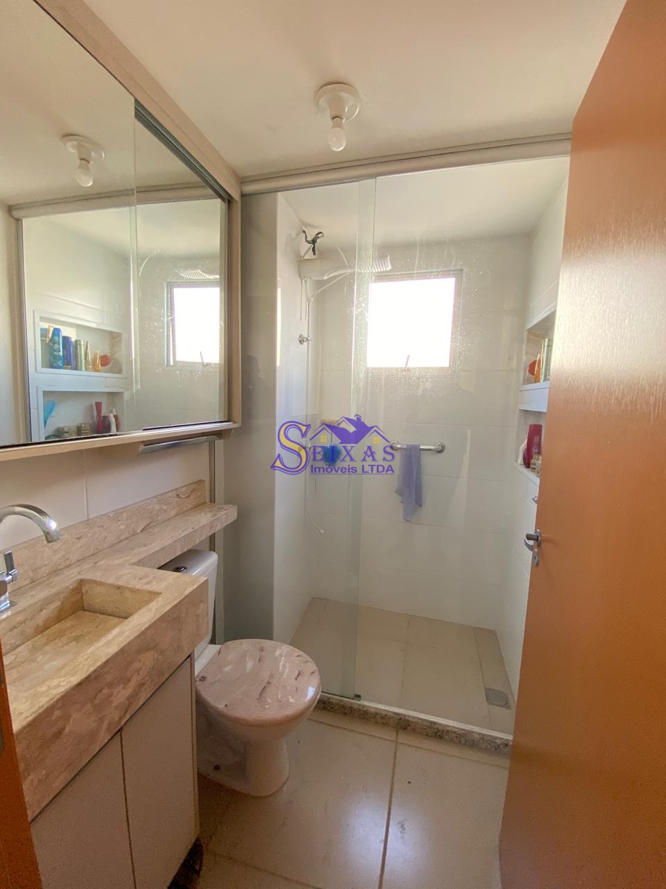 O banheiro social é outro destaque, com box em vidro temperado, espelho, gabinete e acabamentos de bom gosto. Cada detalhe foi pensado para unir beleza, conforto e praticidade no seu dia a dia.