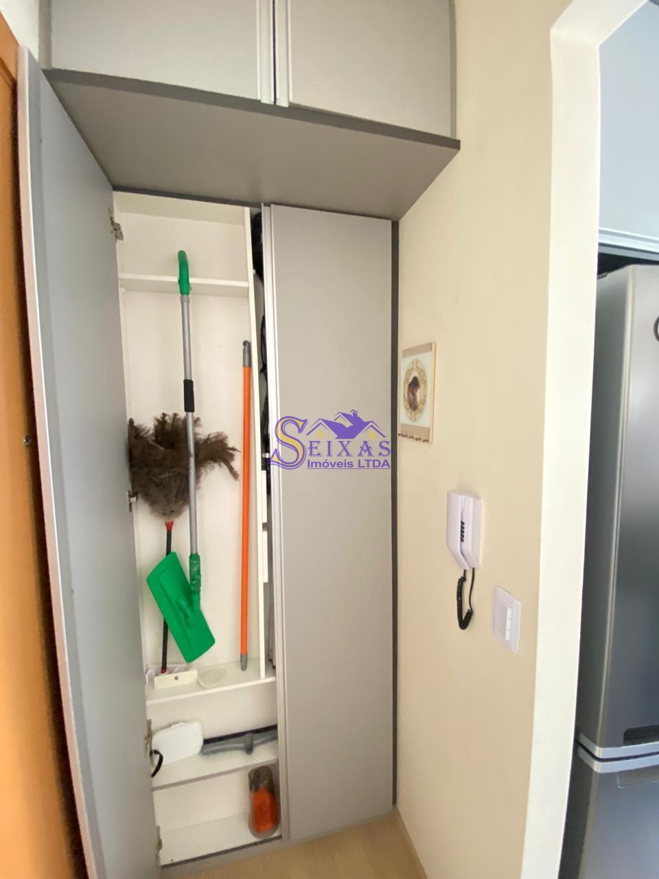 A cozinha estilo americana, totalmente equipada com armários planejados de excelente qualidade, permite integração com a sala, promovendo funcionalidade e um toque contemporâneo ao lar. A área de serviço, anexa à cozinha, também dispõe de armários, mantendo tudo sempre organizado e ao alcance.